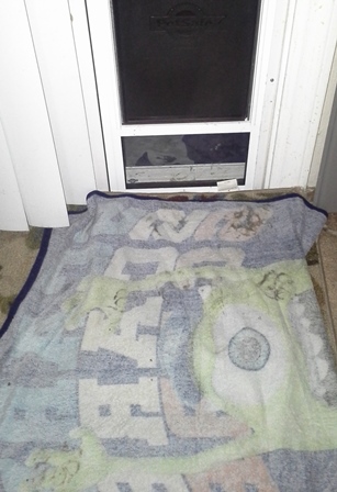If you don’t have a doggie door, the trick still works; the towels just need to cover a larger area.