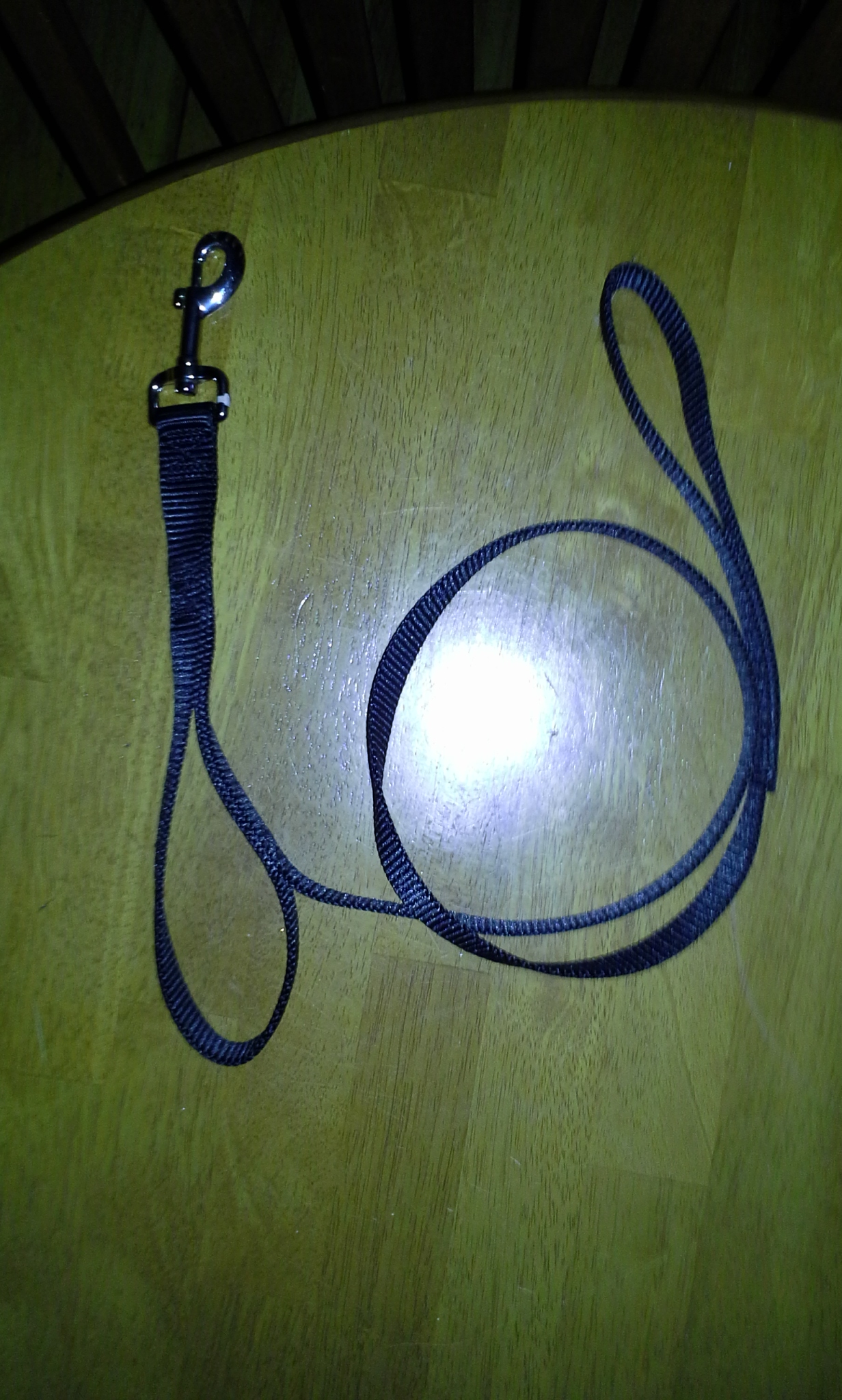 I purchased a new leash for her. It is four feet, but also has a built-in loop so that in flash I can turn it into a 1 foot lead. This was a perfect way to teach her to stay by my side when passing people and other dogs, not out of fear but out of courtesy. Not every one loves dogs, and not all dogs want a teen-age pup running up to them. Plus Phoebe has a little Papilloma wart on her lip and the vet says its contagious, so she isn’t supposed to be kissing on other dogs (I still need to write about that).