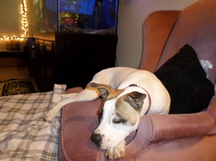 sun all by herself, sleeping in my room when I am not there, and curling up where it all began (the chair in the living room).