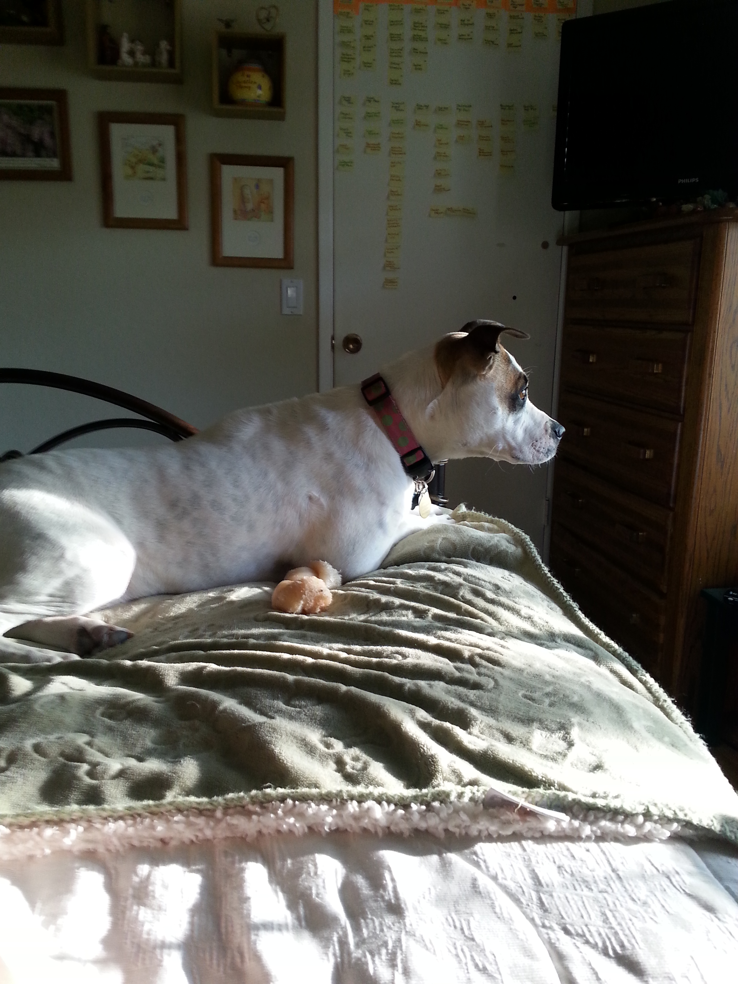After her stint at the doggie day care /kennel she seemed to have a little attitude. With exception of one of my brothers, she barked at everyone who came to our room. She had not been there long enough to make the room ‘hers’