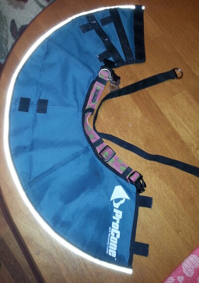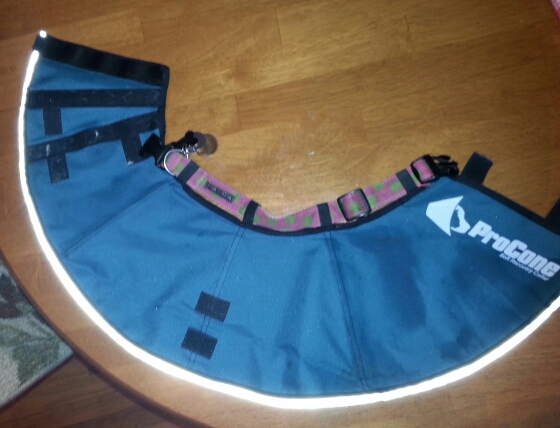 Up until the time I entered the pet store, I believed the big plastic cone was the only option. I was pleasantly surprised to find that several seemingly more comfortable options were available. Options are good, except when the Libra in me kicks in. After nearly an hour of agonizing self-debate, I chose the Contech Pro Collar.