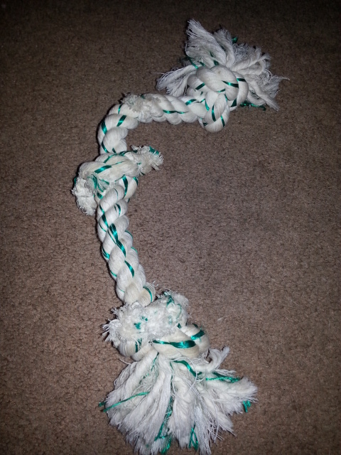 She is simply being too girly girl. She has a rope bone that has lasted for two weeks. She softly picks it up and moves it from place to place, unlike the many rope bones before it where she snorted and chomped and tore them to shreds in a few hours.