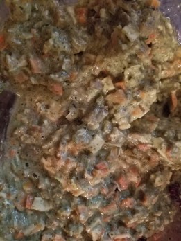 Let it sit for about 30 minutes. The instructions say to wait at least 15 minutes, but overnight is better. I can see why. After 30 minutes it still has that soup-starter partially hydrated texture. I’ll see how it looks in the morning. I had to give Phoebe a sample and she loved it – then again, she eats poop so it is hard to say whether or not a dog with discriminating taste would like it.